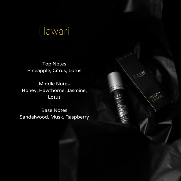 Hawari adalah varian Zaym yang paling digemari. Kesegaran wanginya yang mewah menjadi alasan utama banyak orang menyukai Hawari. Perpaduan wangi buah jeruk, tanaman air, kayu cendana dan musk menjadikan aroma wangi Hawari sangat mewah, segar dan memantik kegembiraan. Type parfum Fruity Floral Musk. Sangat cocok dipakai sepanjang hari. Bukan hanya dipakai untuk menemani ibadah, tetapi juga dipakai untuk aktifitas sehari-hari. Hawari adalah varian Zaym Best Seller, paling digemari, paling laris. 9 dari 10 orang pastinya suka dengan wangi Hawari. Hawari adalah varian wangi kebanggaan dan andalan Zaym.