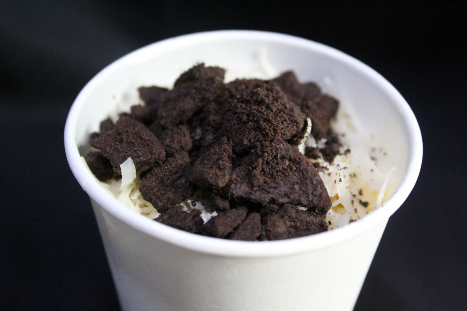 Dengan toping susu dan remahan biskuit oreo yang melimpah