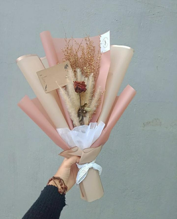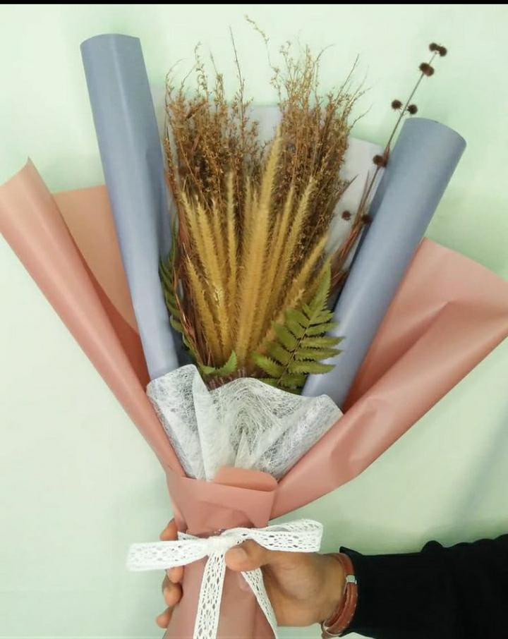 Bouket bunga kering pompong ialah bouket yang di buat dari ilalang kering yang sudah melalui pengeringan dan sudah di pastikan aman di tangan pembeli