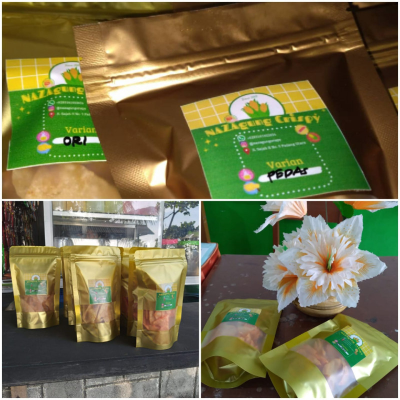 NAZAgung Crispy adalah cemilam keripik yang terbuat dari bahan dasar jagung, dengan beberapa varian rasa seperti balado, jagung manis, jagung baar dan pedas.